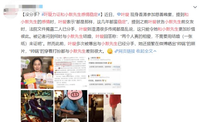 但是在2019年6月份,叶璇采访时突然又说自己和小默先生近几年关系都很稳定,并埋怨很多传闻都是乱说,现在自己和小默先生都更加珍惜彼此。但此前叶璇多次秀恩爱时晒出男方照片,并非是小默先生。