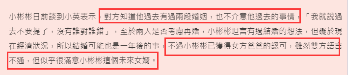 不过随后在被媒体求证时,温兆宇也是坦言照片中的戒指并非婚戒,只是之前送给女方(小英)的礼物,至于女方的身份,温兆宇也坦言是通过朋友介绍认识的,对方在台湾上学,现在已经回越南了,而自己目前也是专心照顾儿子,并且还有上百万房贷要还,所以结婚的事情以后再说了,同时虽然经历过两段失败的婚姻,自己也是有点害怕了,不过自己也觉得婚姻不是重点,两个人合得来才是重点。