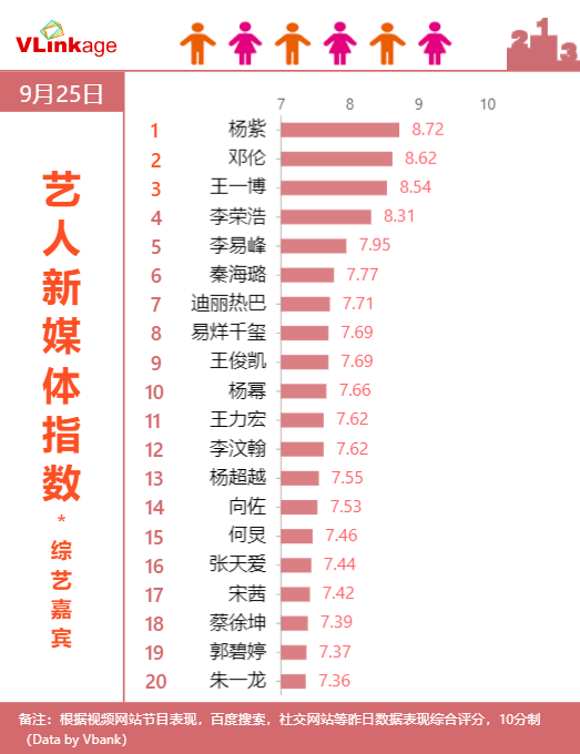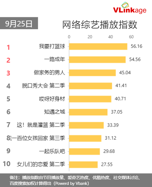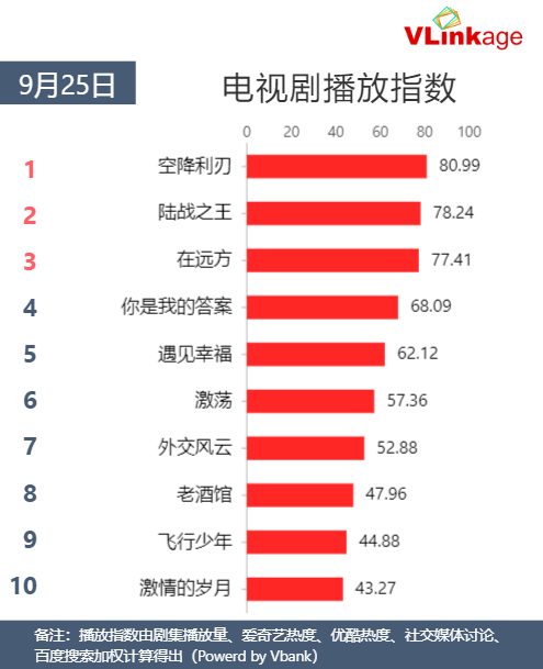 原标题:Vlinkage榜单 | 9月25日网播数据及艺人新媒体