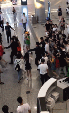 本来是一个普通的明星接机,却上演了全武行。
