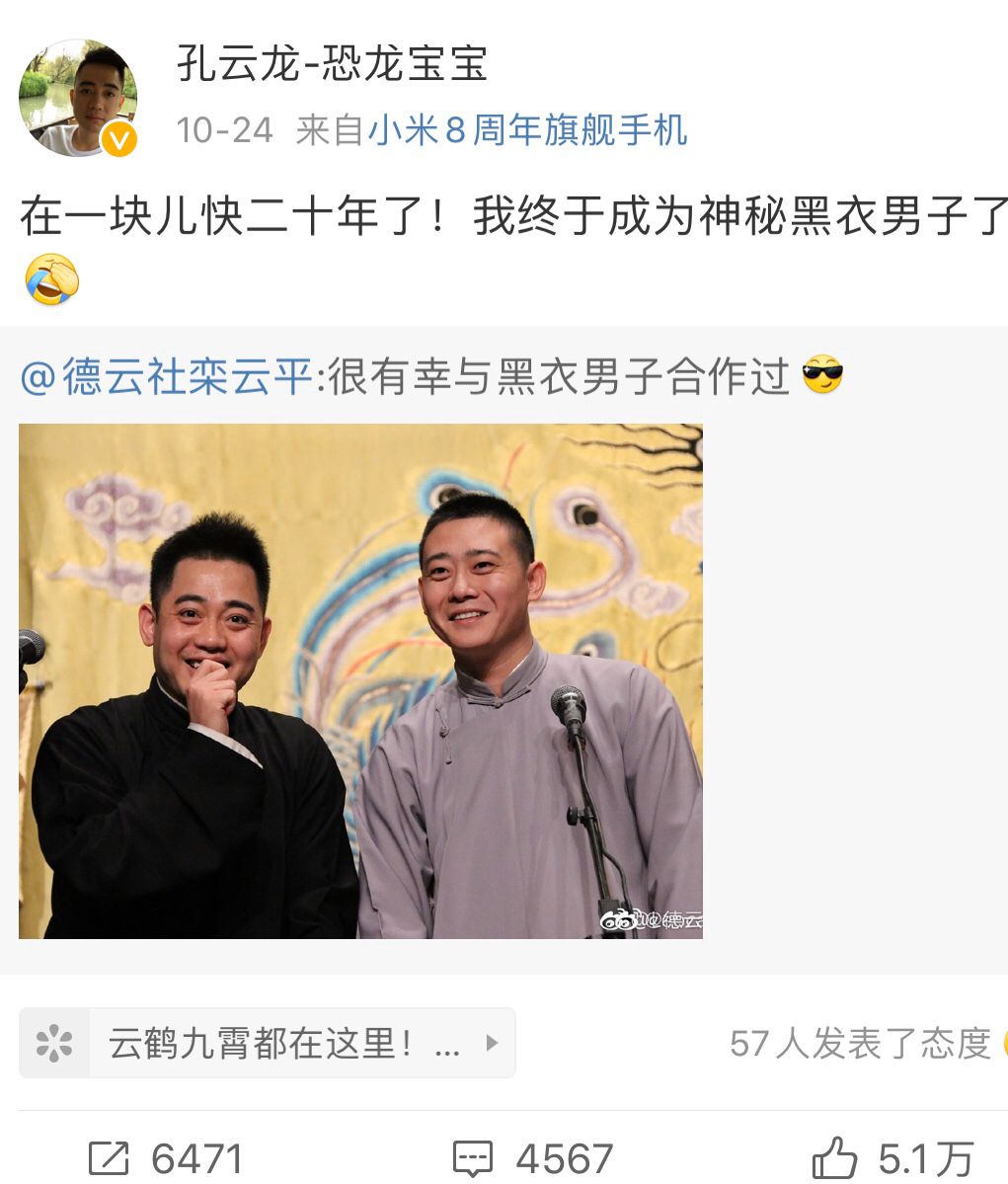 被称为“神秘黑衣男子”后,德云社内部也开始纷纷砸挂。