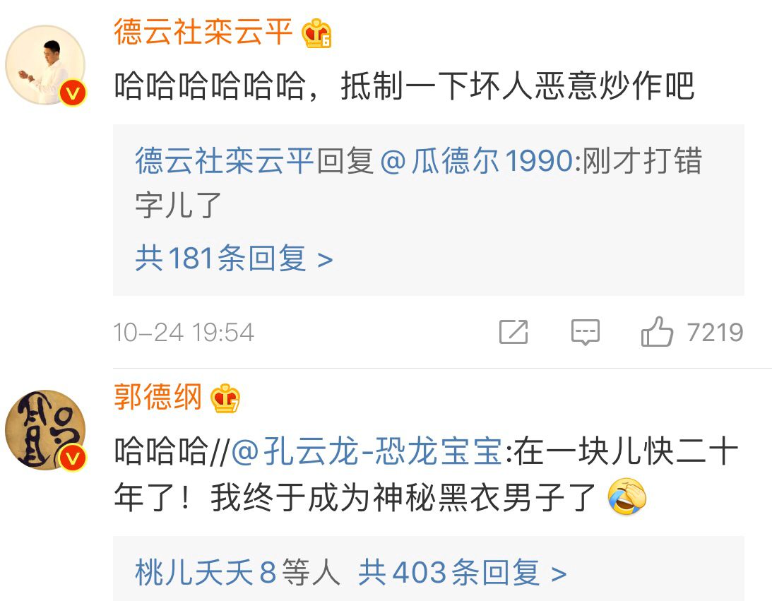 或许正是这个原因,已经看淡风云的郭德纲才用了“哈哈哈”几个字作为回复。