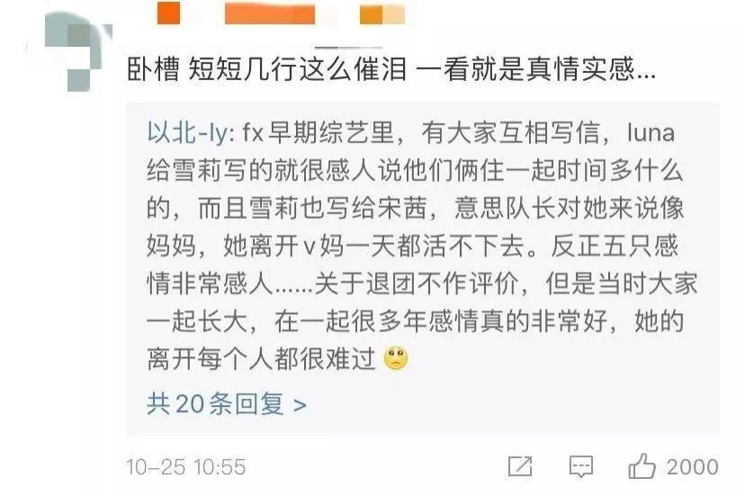 有网友也表示,这短短几行催泪的文字,一看就是真情实感。其实在f(x)早期的综艺里,成员之间也互相写过信给对方,Luna之前就给雪莉写过很多催泪的文字,不过这一次再写,却再也得不到任何回复了。粉丝们除了心痛还是心痛,从此以后,人间再无水蜜桃。