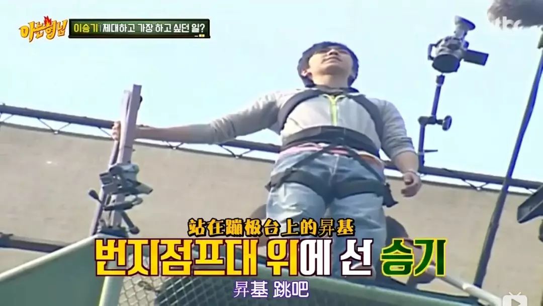 《两天一夜》有一次的惩罚任务是蹦极,李胜基这么好强的人,在上面来来回回折腾了三个小时,都快哭了也没敢跳下来。最后虎东冲着李秀根大喊,“秀根你上来!”你不敢跳,就会连累别人。这一段被李胜基当做黑历史深深记在心里。