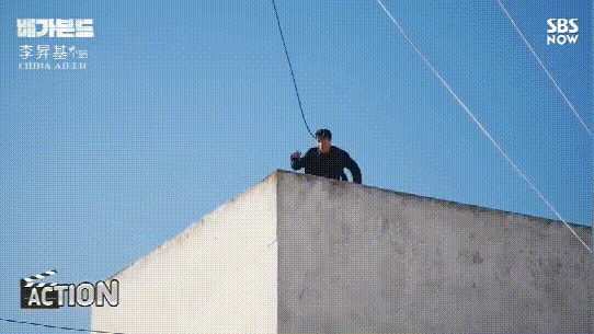 楼顶上的跑酷,即使根本看不见脸的背影也是李胜基自己上的。
