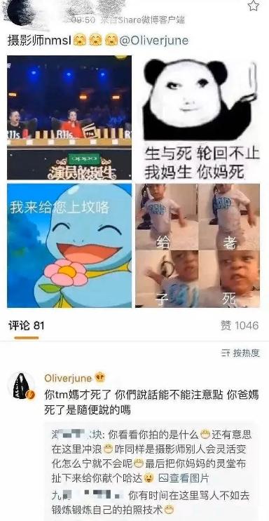 由于粉丝对杨幂摄影师越骂越生气,部分粉丝甚至用很不堪的语言骂,仿佛摄影师做了什么十恶不赦的事情,引起了摄影师强烈的不满,不得不留言回怼。
