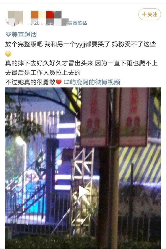 吴宣仪在一次录制中从器械上跌落,但是问题在于,下面的缓冲装置是一个海洋球池,因为连夜下雨,其实那个池子里面既蓄了水,还有非常因为沾了水非常重的海洋球。吴宣仪掉进池子里后,根据粉丝拍摄的视频来看,有半分钟半分钟以上的时间,吴宣仪连头都伸不出来,完全处于被埋的状态。而且这个池子有1米9深,吴宣仪身高只有1米66。