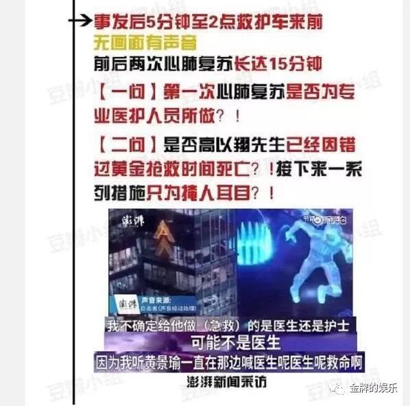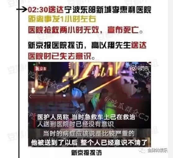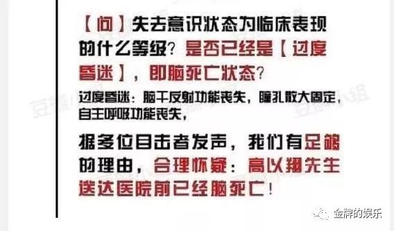 是措施了黄金救治时间后,高以翔失去意识,据多方目击者发声,我们有足够的理由,合理的怀疑:高以翔先生在送达医院前就已经脑死亡!