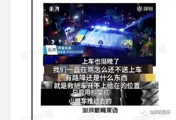 网友们表示高以翔上车很晚,观众也很着急一直在骂怎么还不送上车,救护车开不进他的那个位置,只能用担架和条推车推过去。