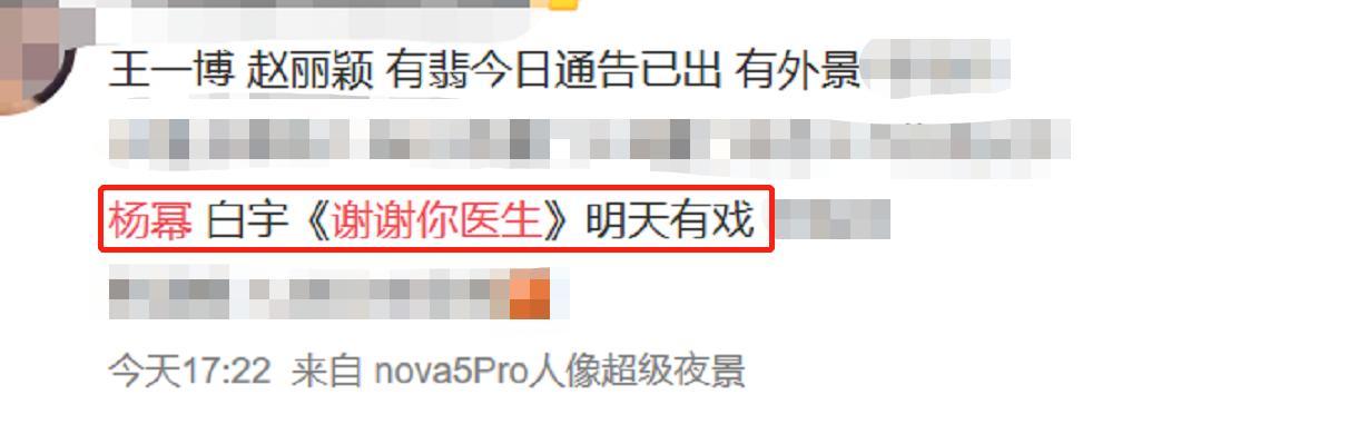 杨幂和白宇主演的新戏《谢谢你医生》于去年11月开机,之后就进入了紧张的拍摄过程中。两位主演分别在剧中饰演医生肖砚和白术,戏份集中在医院拍摄。大年三十当天,两位主演也还在剧组中继续拍戏。眼下许多医务工作者们也奋战防疫一线,与时间疾速赛跑,为生命暖心护航。向白衣天使们致敬!