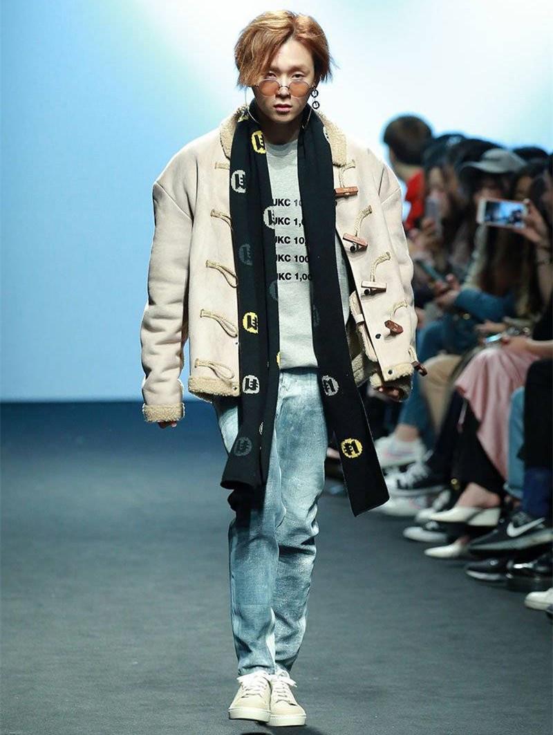 秀场的生图造型,也是将颜值和比例毁了个一塌糊涂,浅色的发色和米灰色的麂皮夹克,衬得肤色暗淡蜡黄,而厚重的款式和纤瘦的双腿比例不成正比,造成了一种视觉压缩的错觉,让他的身高看上去也没有往日的匀称。
