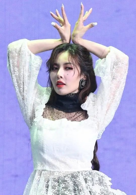 在这场回归Showcase上,泫雅当天身穿白色的蕾丝上衣,搭配黑色层叠的蛋糕短裙,配合上高筒机车靴,在舞台上展现着自己姣好的身材。在现场的超片中,泫雅没有了之前“放飞自我”的作风,简洁的黑白穿搭配上及腰的黑色卷发,显得的她格外精致美艳,颜值状态又回到了之前的巅峰时期。