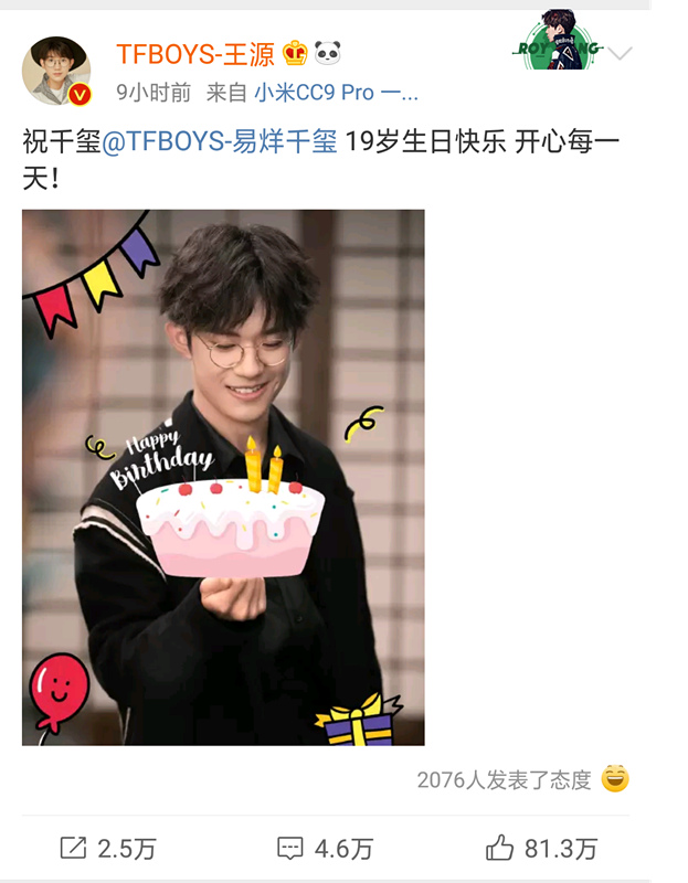 原标题:王俊凯王源晒照为易烊千玺庆生,在兄弟眼中,千玺大概是个吃