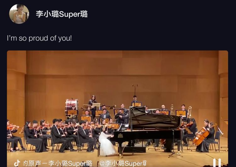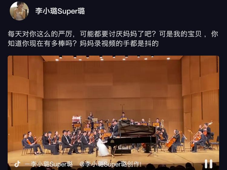 最近,李小璐的社交平台账号渐渐开始活跃起来,经常会分享自己一些动态。就在12月22日,李小璐连续晒出两段视频,视频中甜馨穿一身白色公主裙,坐在舞台上弹钢琴,一整个乐团为她伴奏。