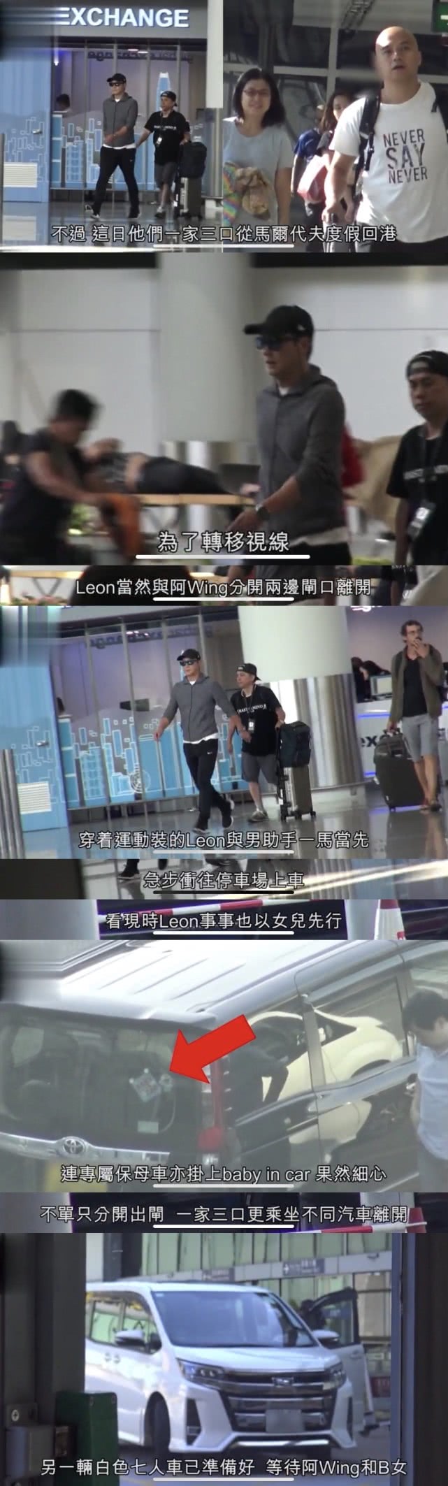 一家三口不止分开出闸,更是乘坐不同汽车离开,实在夸张。
