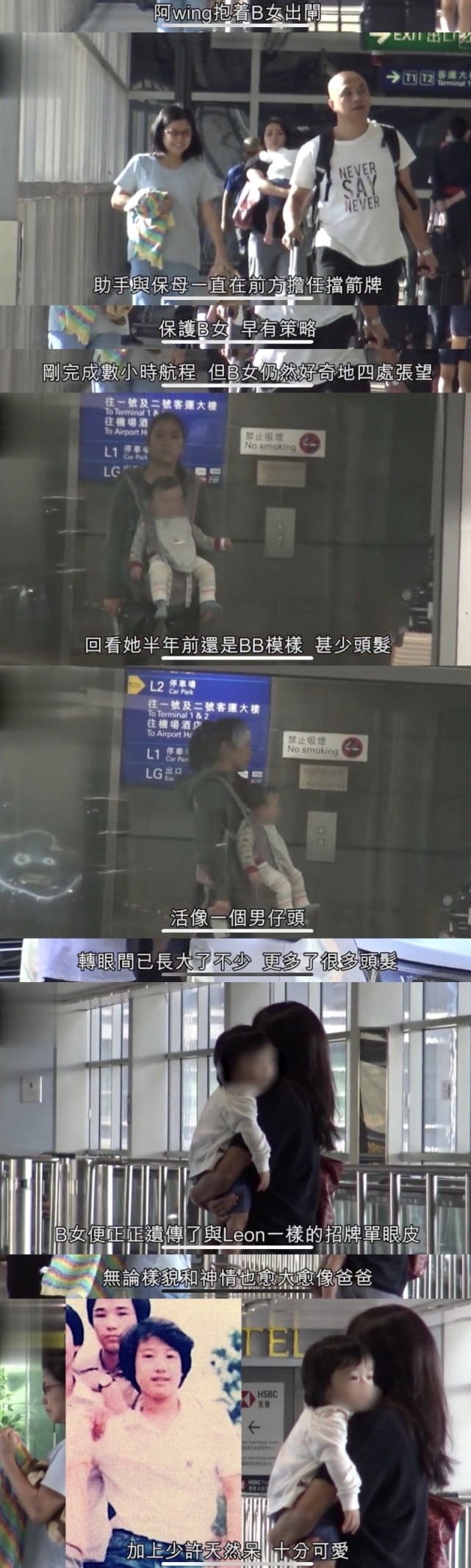 另一边厢,黎明女友阿Wing抱着女儿等出闸,助手与保姆站在前方为她们遮挡视线。