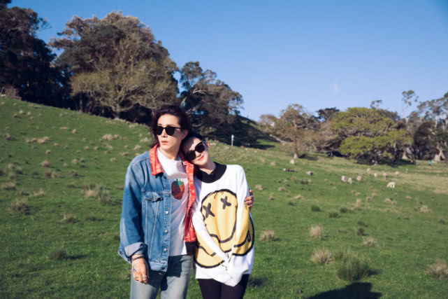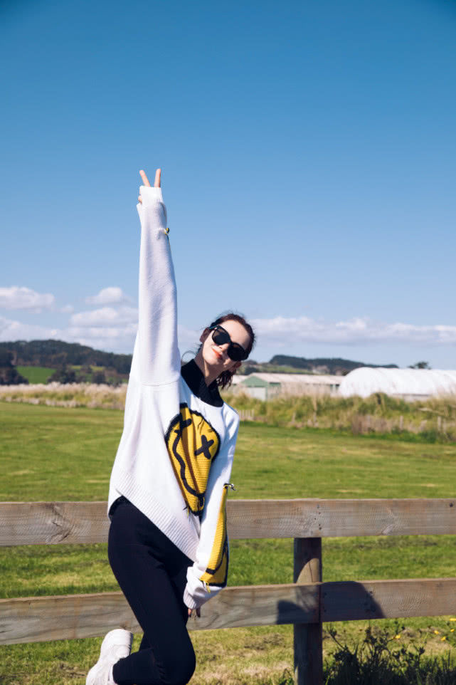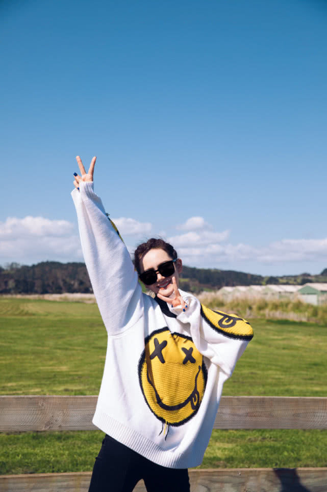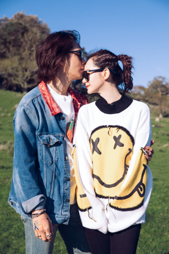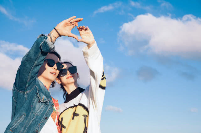 戚薇穿着一件白色毛衣,胸前一个大大的笑脸十足吸睛,她扎起马尾,露出精致的笑脸,对着镜头巧笑嫣然,比出经典的剪刀手姿势,给人一种活力四射的感觉。李承铉则是穿着一身牛仔外套,戴着墨镜,十分帅气有型,两人甜蜜依偎,合力摆出爱心手势,令人称羡。