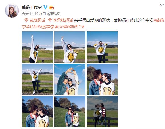 12月11日,戚薇工作室晒出一组戚薇和李承铉的照片,并配文写道:亲手摆出爱你的形状,喜悦涌进彼此的心中。一直以来,戚薇和李承铉是圈内的“模范夫妻”,这次两人合体发糖,也是让观众们吃了一波狗粮啊。没想到,两人还来了个国外旅游,生活过得十分惬意。