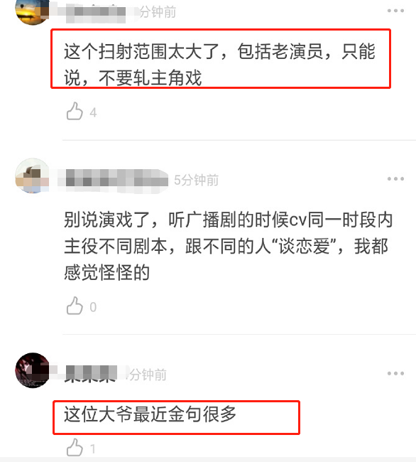 但是也有不少网友另有看法,觉得张涵予的这个波及范围太大了,包括一些老演员都躺枪了,只能说不要轧主角戏就行,还有一些网友说“这位大爷金句真多”。
