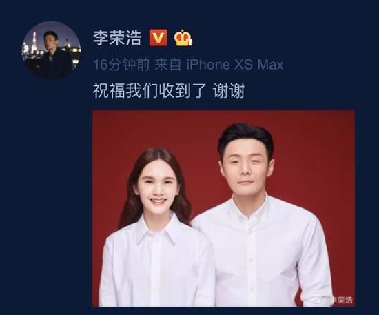 9月19日,杨丞琳和李荣浩正式官宣结婚,他们分别在微博上晒出结婚照,并配上同一段文字:“祝福我们收到了,谢谢。”这段4年的爱情长跑终于修成正果,十分甜蜜,羡煞旁人。网友在祝福的同时也不忘调侃他们的结婚证,“李荣浩的眼睛还没有杨丞琳的卧蚕大”这一句话顿时在网上火了起来。