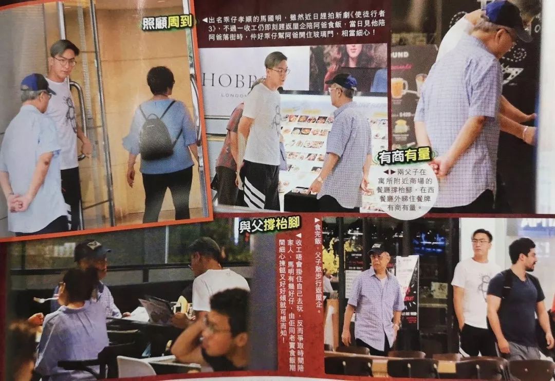 9月19日,有港媒拍到马国明一下班就和父亲一同逛商场。