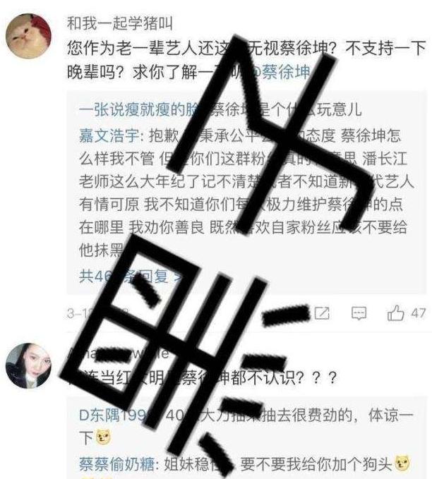 但就这样一件小事,却有无聊的网友跑去潘长江微博指责潘长江老师,后来潘长江气愤不过,发微博申诉。潘长江发言后很多人表示理解支持,虽然都在娱乐圈发展,但是不认识新人晚辈也很正常,不算犯错和违法,居然因此挨骂,确实气愤。但后面有蔡徐坤粉丝出来指认,这些冒充蔡徐坤粉丝去骂潘长江老师的人,根本不是蔡徐坤的粉丝,而是故意去招黑引发误会,影响蔡徐坤粉丝的形象,后来解释清楚了误会,但也造成了一些不好的影响。
