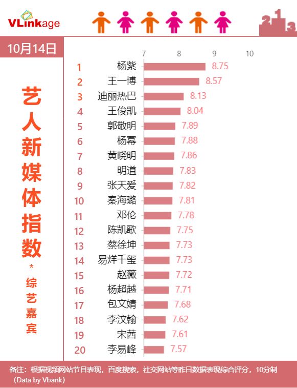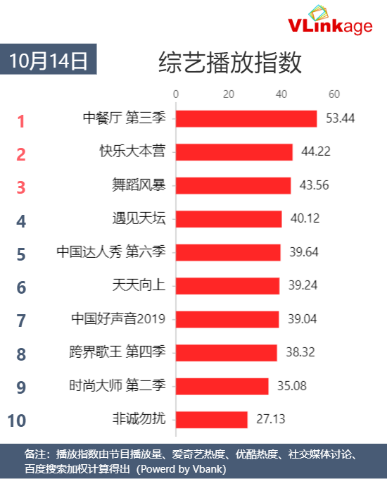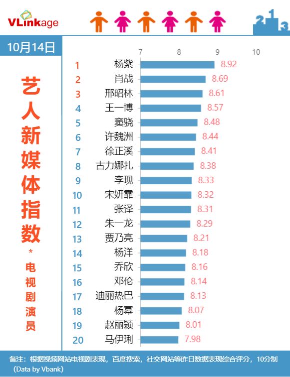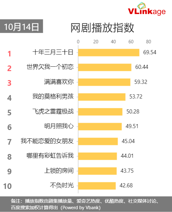 原标题:Vlinkage榜单 | 10月14日网播数据及艺人新媒体