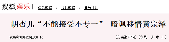 2012年,胡杏儿在接受采访的时候承认已和黄宗泽分手…
