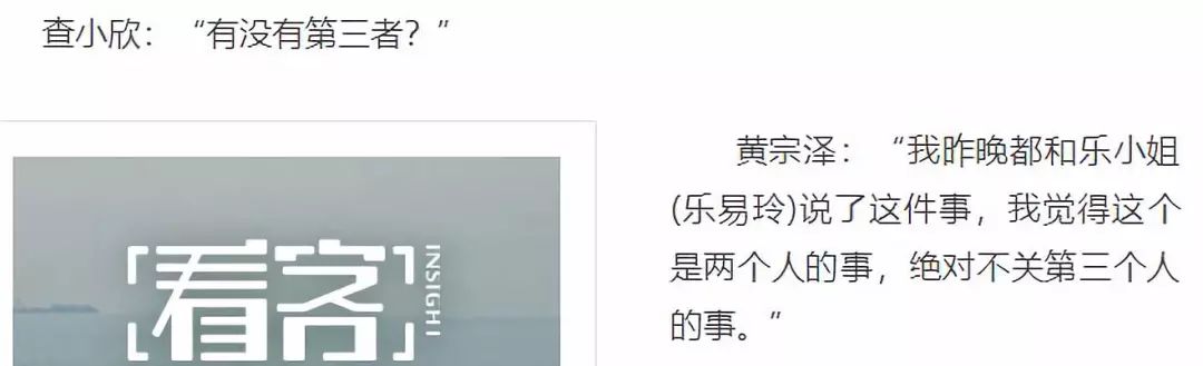 虽然黄宗泽称没有第三者,二人是和平分手。