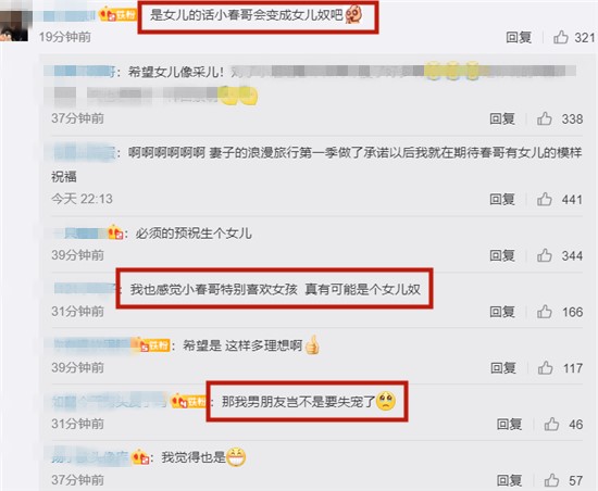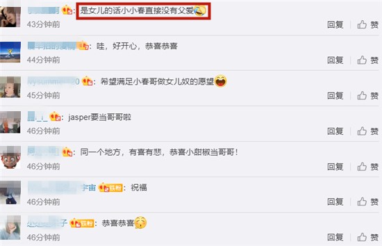 不过不少粉丝在恭喜应采儿二胎,小小春当哥哥的同时却开始担心小小春今后的地位:若是真生个女儿,这个孩子肯定会比哥哥幸福,一个是女儿奴,一个应该是妹控。小小春在那档亲子节目里,对泡芙也很关爱。只是小小春不知道是否会有被忽略的感觉。粉丝反正是各种担心二胎要是女儿的话,小小春要失宠!
