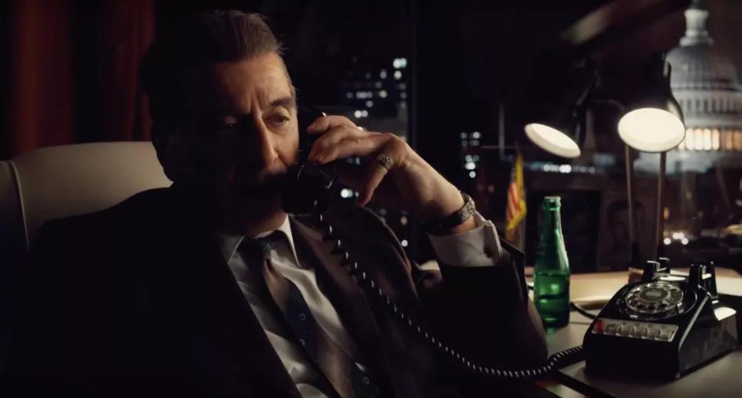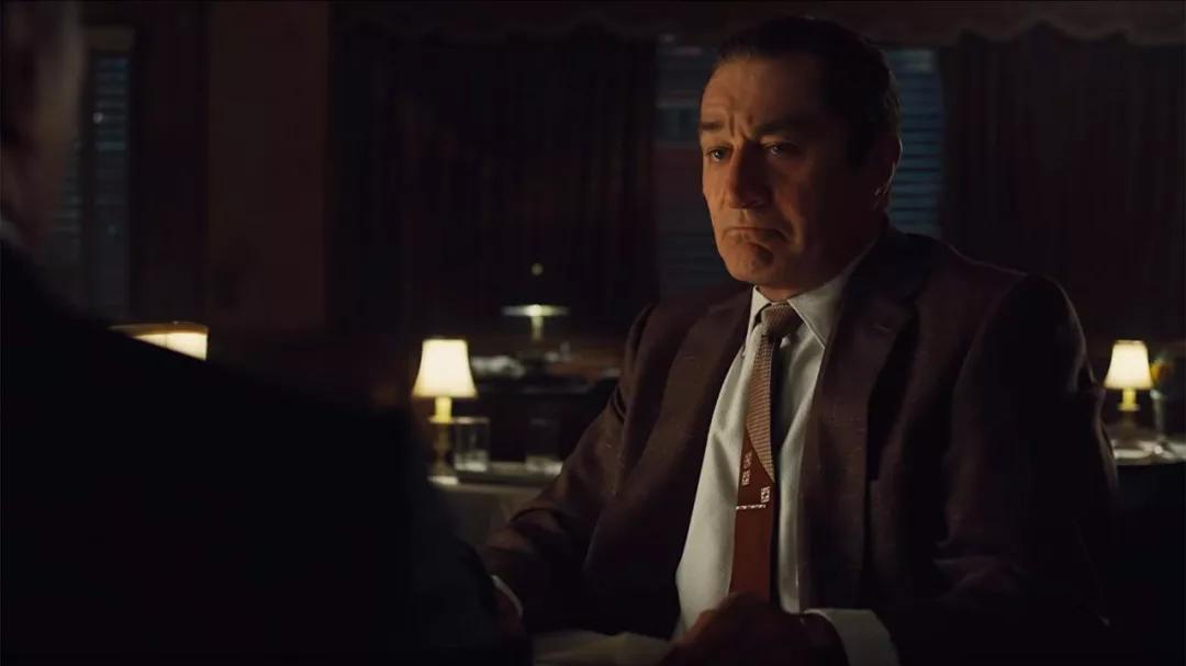 影片从老年Frank开始,通过倒叙和零星的插叙,讲述了一段荡气回肠却令人唏嘘的战后黑帮史。作为观众,我们透过这个人的视角,瞥见了在那个政治动荡的年代,美国社会里血腥暴力的权力斗争,窥探到了那个时代里,犯罪组织在台面下打打杀杀、台面上政治人物粉墨登场的混沌景象。