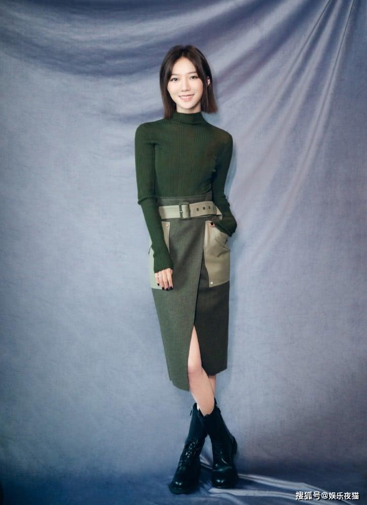 王珞丹上身穿了件墨绿色毛衣,带有修身的版型,很好地将其身材曲线展示出来,视觉显瘦,下身穿了件开叉半身裙,拼接式的造型,带来酷帅造型感,开叉的裙摆下,显露美腿,很是吸睛。