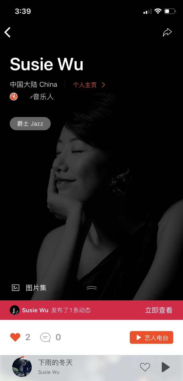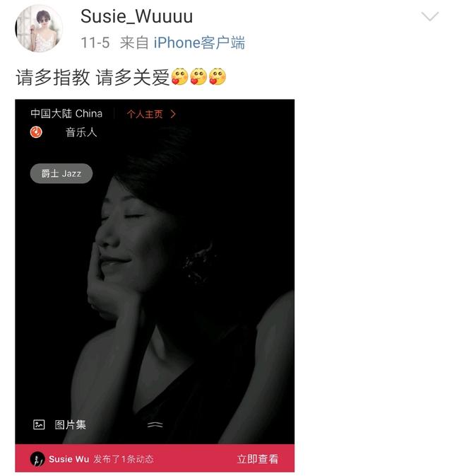 随着关注她的人变多,Susie也变得勤快起来,经常分享一些爵士乐给大家,有时候也晒一些自己参加音乐节的照片和视频,在舞台上的风采俨然像个大明星。