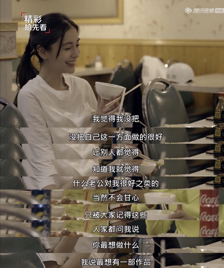 在节目中有人说对杨颖的印象就是她的老公对她很好,但是现在有一些绯闻,之后也是欲言又止。她回答说是自己没有把这方面做好,让大家提到她就觉得她老公对她很好什么的,当然不甘心只被大家记住这个,最想做的事情就是希望能够有一部作品,被大家记住。其实,这个愿望很真实,但在她身上真的很难实现。