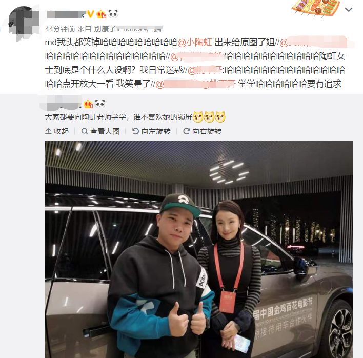 舞台上陶虹为大家带来欢乐,舞台下她和粉丝合影,同样让网友们“笑到头掉”“笑晕了”,并纷纷向陶虹“求原图”。