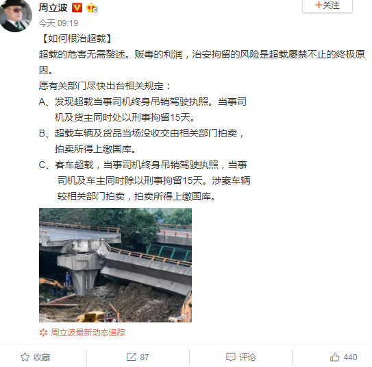 虽然如此,周立波依然在网络上“指点江山”,或讴歌祖国大好河山,或批评一些势利小人,或对一些事件发表言论等等。最近,周立波就对根治超载发表言论,认为一定要彻底根治,更是要出台一些措施。