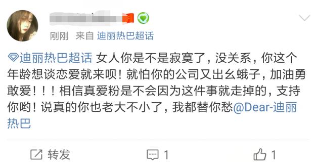也有粉丝在微博上喊话迪丽热巴:“加油勇敢爱,真爱粉是不会因为这件事走掉的!”