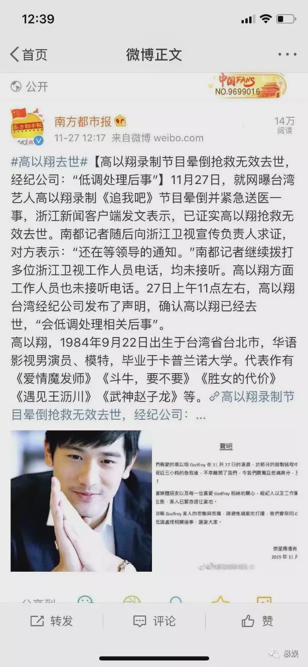 原标题:高以翔猝死,我讨厌这个为了取悦观众而拼命的