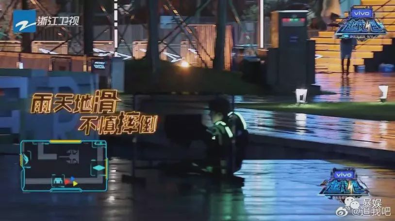 拳王邹市明在海洋球环节脚扭了完全使不上力,陷在里面没被发现,后来被人抬出来。