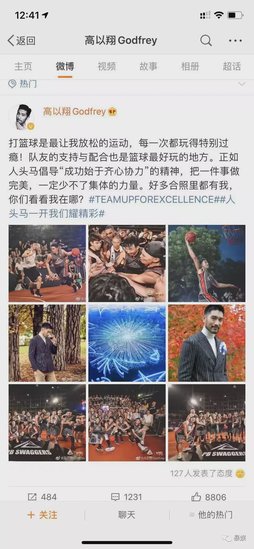 35岁的高以翔爱好篮球并且十分重视对自己的身材管理。