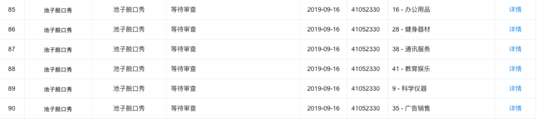 事实上,就在去年的9月,笑果还围绕“池子脱口秀”,申请了一系列不同种类的商标,足以证明池子本人的商业价值。但失去了笑果这样模式成熟的舞台,池子短时间内要寻找到同样影响力、模式成熟的平台和合作方并不是那么容易。