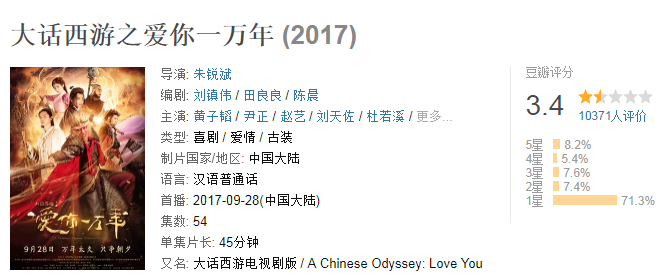 相比较后就不得不令人反扑起黄子韬的演技了。据悉在2016年黄子韬就曾经与赵艺、刘天佐、杜若溪、温心、尹正等人联合出演《大话西游之爱你一万年》,将该剧拍好,今后演员和导演的知名度会一飞冲天也不无可能,毕竟大话西游是经典作品。不过可惜了,最终《大话西游之爱你一万年》才获得3.4分的超低影评。其中缘由最多可以总结几点: