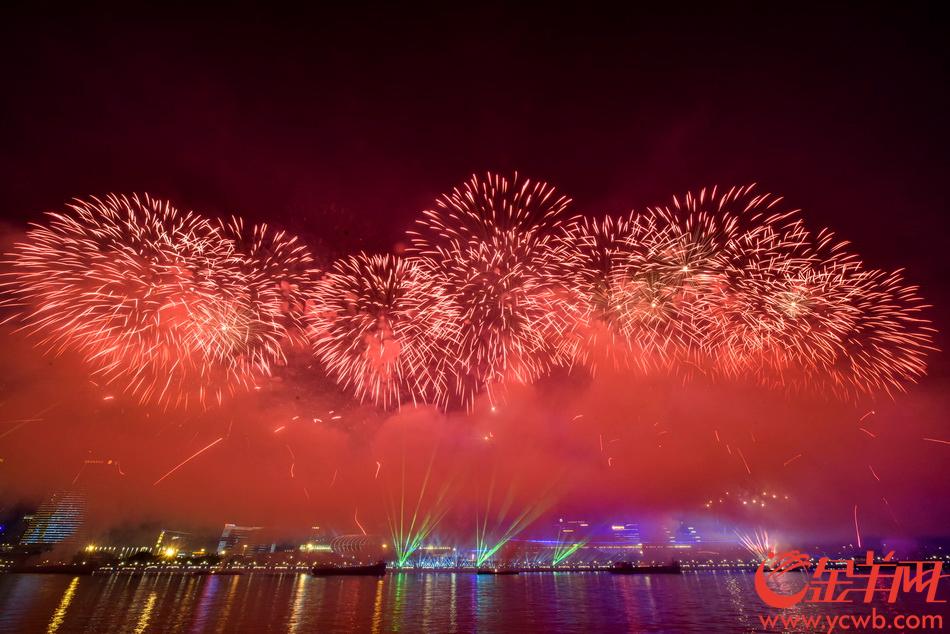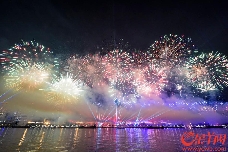 夜幕之下,绚烂烟花漫天华彩,珠江两岸美轮美奂。