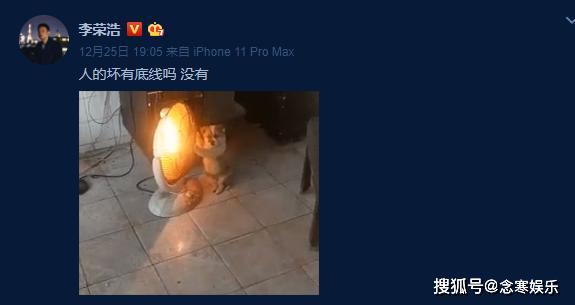 25日晚,正值圣诞佳节,很多人粉丝原本以为李荣浩会发祝福,可等来的却是李荣浩发牢骚。只见他晒了一张小狗贴在小太阳取暖器上的动态图,并配文自问自答“人的坏有底线吗?没有”,消息一出立即引起了外界不小的热议。