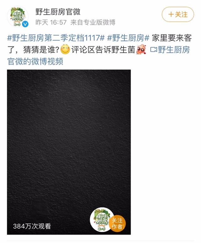 《野生厨房》官方微博在11月8日发布了一条语音视频:“涵哥,能听出来我是谁吗?”,配的文案是:家里要来客人了,猜猜是谁?