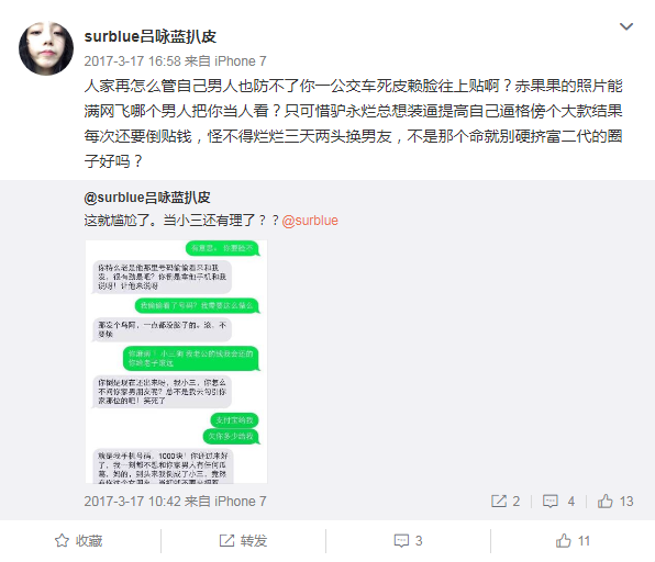如果以上只能算表面上的黑历史的话,那么曾被扒皮做小三的她,显然是人品也值得质疑了。