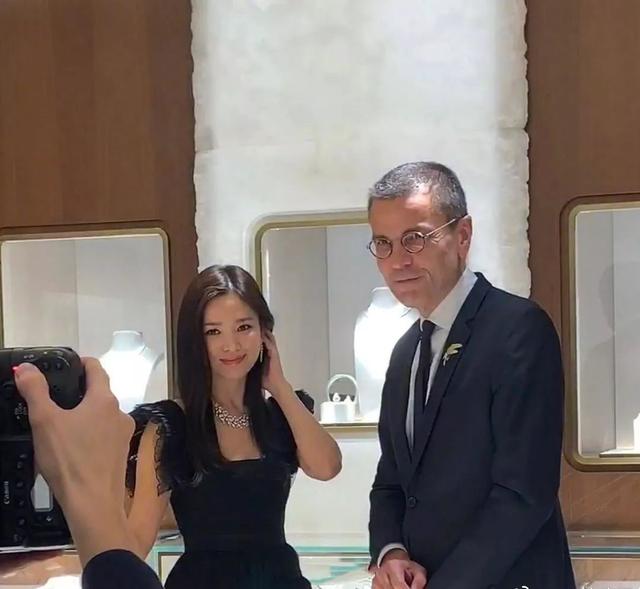 “乔妹”选择了稳重的黑色连衣裙搭配璀璨的钻石项链和耳饰,举手投足之间散发着成熟女人的优雅气质。