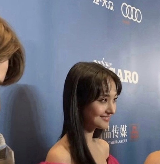 她黑发垂在胸前,额前留着刘海,显的整张脸更小了,不愧是巴掌脸啊。除此之外,她整个人身材消瘦高挑,看来身材管理也很到位。在一群人中很显眼。