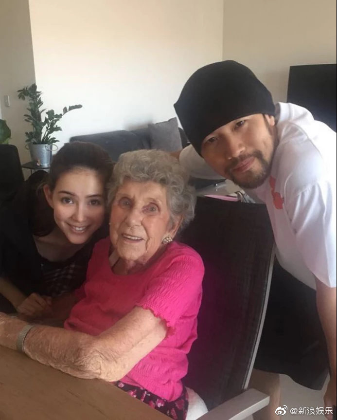 昆凌晒出两口子与奶奶的亲密合照,照片上昆凌亲密靠在奶奶身上,一家人其乐融融。