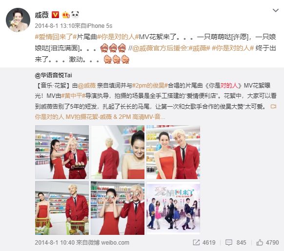 眼看戚哥还很敬业地在微博上为新歌《你是对的人》吆喝,一不小心都以为她要和李俊昊组CP了。